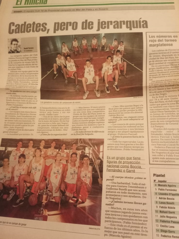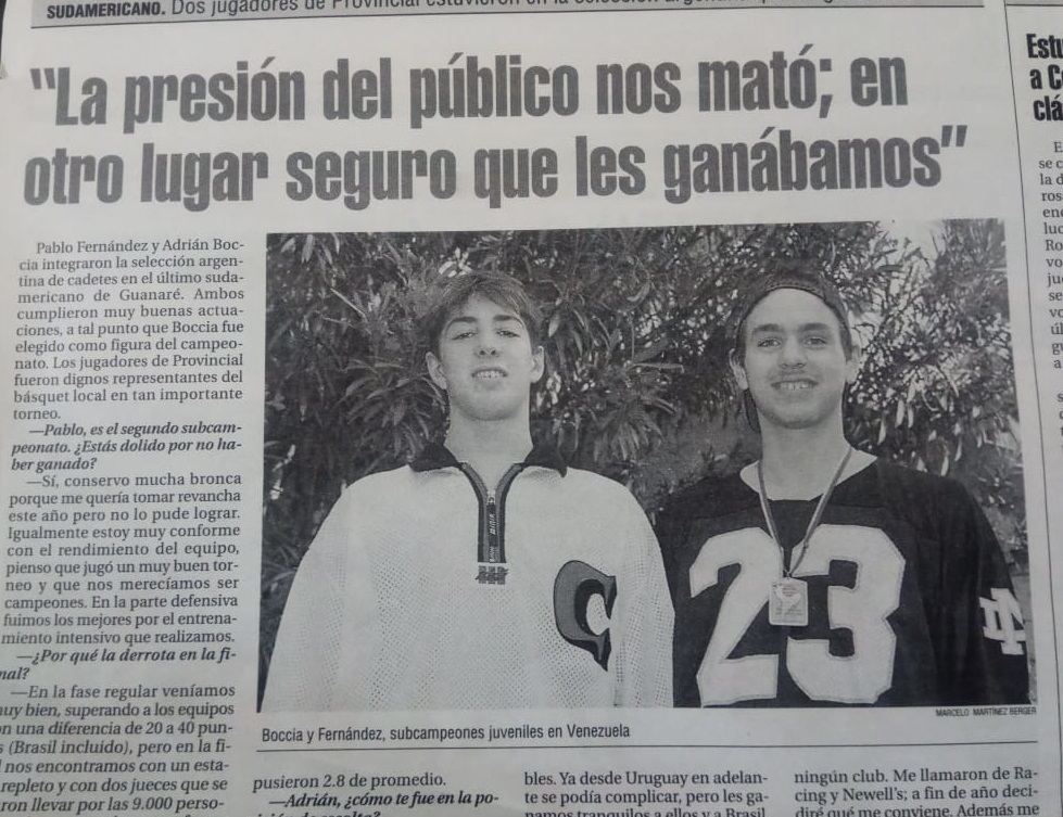 Y a casi 22 años de aquella entrevista, se juntan para charlar otra vez y recordar un poco. “Seguimos en contacto permanente con los chicos de Provincial porque nuestro grupo de amigos se formó ahí. Son horas y horas que pasábamos adentro del club, jugábamos desde el fútbol hasta el ladrón y poli. Son los mejores recuerdos, la mejor inversión de horas”, resume Pablo Fernández, quien recuerda la nota y repasa algo del recorrido: “Ufff, 22 años ya. Estoy muy contento por lo que me tocó, he transitado muchos estados gracias al básquet, he recorrido el país, y tuve la suerte de conocer mucha gente. Pero no sólo el recorrido es importante sino también con la vigencia que se transita”.