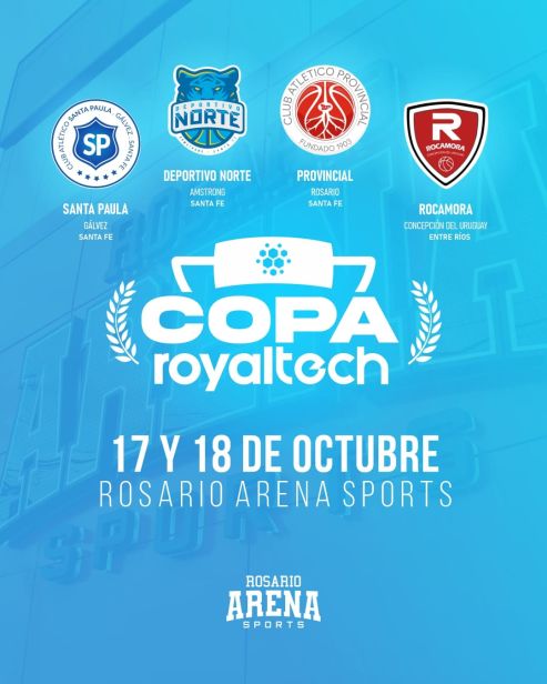 La Copa RoyalTech se disputará los días 17 y 18 de octubre en el Rosario Arena Sports con la participación de Provincial, Santa Paula de Gálvez, Tomás de Rocamora de Concepción del Uruguay y Norte de Armstrong. El lunes se pondrán en venta las entradas.
